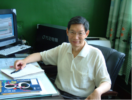 计算机系主任康立山指导参加挑战杯赛的员工(2004年5月)