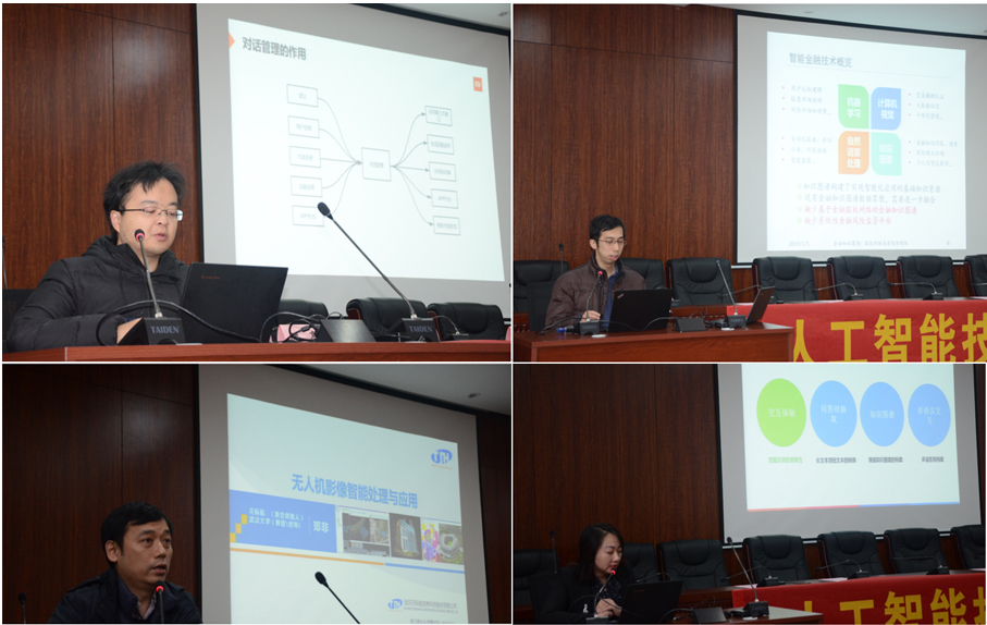 之后有四位知名人工智能企业和高校的专家进行了分享。分别是小米集团小爱同学平台甘艺萌带来《小爱同学对话管理系统与实现》内容分享,武汉大学信息管理公司副教授洪亮博士带来《股权网络视角下的金融知识图谱研究与平台》内容演讲。武汉天际航信息科技股份有限公司创始人邓非博士带来《无人机影像智能化处理与应用》的内容分享,以及武汉泰迪智慧科技有限公司CEO刘丽君博士带来《智能语义交互平台技术和应用》分享。
