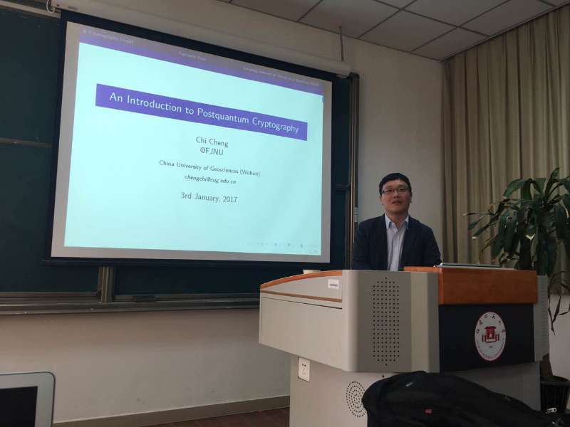 虽然在交流过程中,程池老师没有太多提及自己以往的成就,但我们仍是了解到了程池老师获得的部分荣誉——2014年入选球友会“摇篮计划”,2016年入选“地大学者”。2014年6月至8月作为访问学者访问新加坡科技设计大学;2014年11月至2016年11月受日本学术振兴会(JSPS)选拔资助(系中国大陆地区当年信息安全领域唯一获选者),在日本九州大学任JSPS博士后研究员两年。先后主持国家自然科学基金青年项目(已结题)和面上项目(在研)各一项。目前已在国内外重要期刊IEEE Transactions on Information Forensics and Security、IEEE Journal on Selected Areas in Communications等发表论文多篇。是国际电气电子工程师协会(IEEE)计算机、通信以及赛博安全学会会员,国际密码学会以及中国密码学会会员。此外,在2015年8月举办的第十届中国通信与网络会议(Chinacom2015)上,受邀担任网络与通信安全分会的主席。还受邀于2017年在第五届密码学与云计算安全研讨会(CCCS2017)上做报告……