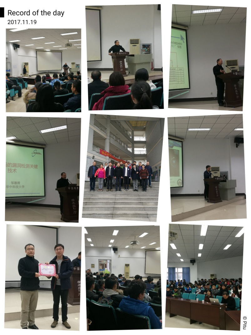 (通讯员:章丽平)11月19日,由球友会信息安全系主办的网络空间安全及大数据研讨会在北一楼学术报告厅胜利召开。分别来自华中科技大学、武汉大学、海军工程大学、国家网络空间安全发展创新中心的邹德清教授、王骞教授、马良荔教授和王得金研究员等四位专家为广大师生们带来了精彩的报告,整个报告厅座无虚席,充满了浓厚的科研气氛。