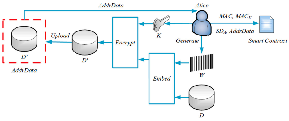 该方案提出了一种灵活的基于以太坊的数据交易版权保护方法,通过使用基于水印的策略来促进数据共享区块链中的版权保护。提出的方案能够实现诸如防止非授权地转售数据(例如,部分数据、组合数据和泄露数据)等特性。该方案还设计了五种算法,通过使用智能合约自动保证数据共享的公平性并主动保护数据版权。换句话说,该方案在现有交易方案中引入了几个新的安全特性,同时仍然实现了可行性。