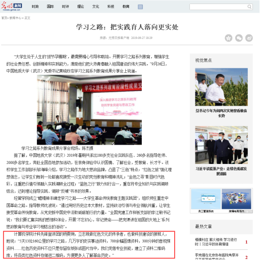 计科先锋团队受到各级媒体的广泛关注,三年间分别被光明日报、湖北高校思政网、中国青年网、多彩老员工网等多家国家级、省级和校级媒体报道,还受到浙江在线、红安热线等实践地媒体报道,为活动营造良好的舆论氛围,提高活动影响力。