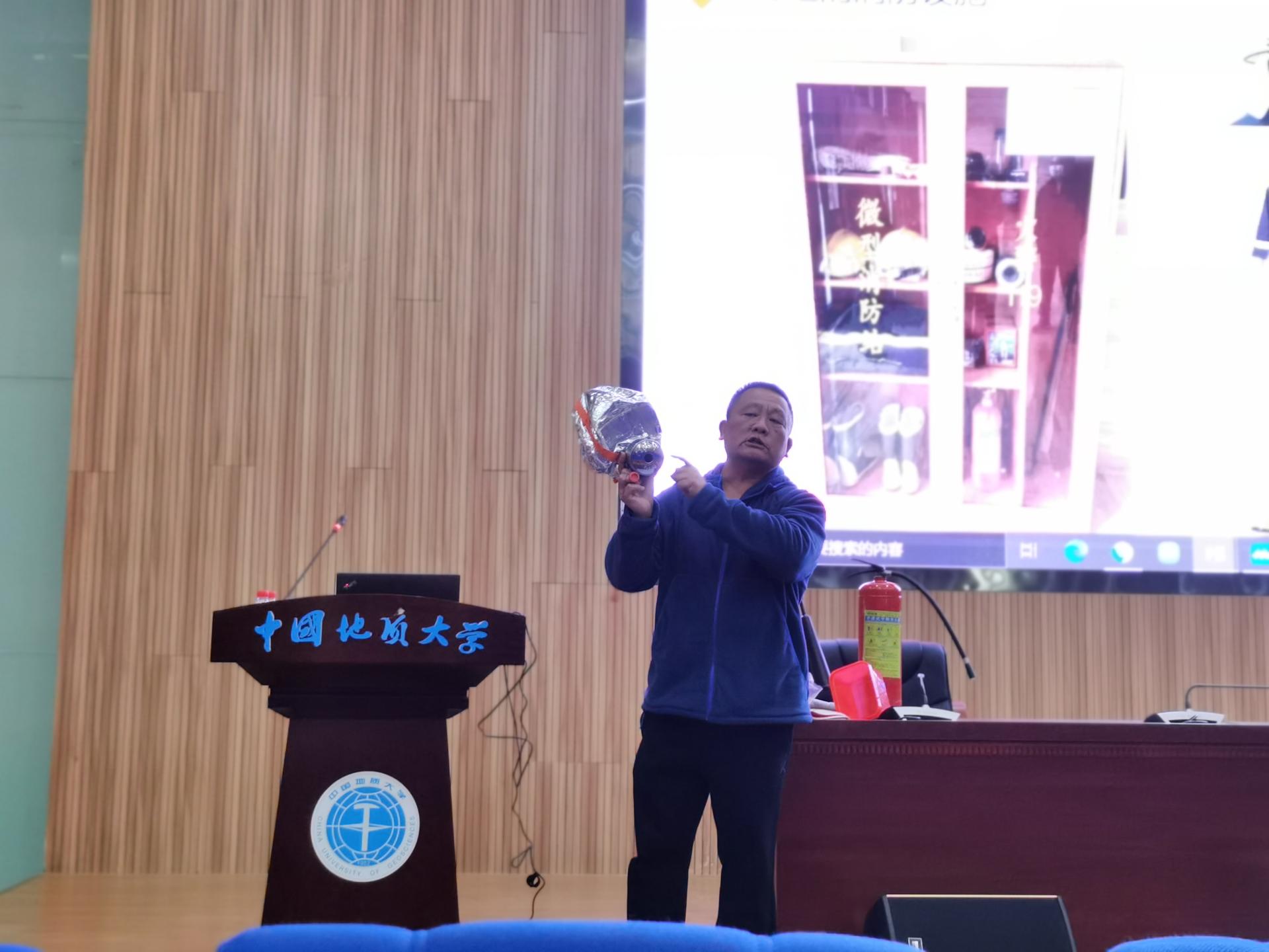 培训会上,周科长以《中华人民共和国消防法》为引入,明确了“维护消防安全是我们每个人的责任和义务”。接着,他以发生在我们周围的真实案例为切入点,以案说理、图文并茂,分别从员工宿舍、实验室、家庭厨房三大涉及安全隐患的空间进行阐述,提醒师生注意电器使用安全;深入浅出地讲解了火灾的形成、发展和危害,火灾预防常识以及火场疏散逃生时的注意事项;同时向师生展示了干粉灭火器、泡沫灭火器、防烟面具的使用方法。