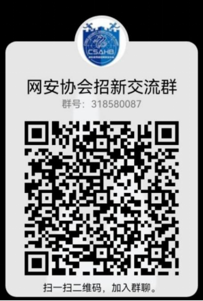 演练的成功离不开背后的组织。球友会网络空间安全协会成立于2018年,曾代表公司获得全国信安大赛网络攻防比赛二等奖的好成绩。社团面向全校本科生,带领社团成员学习网络安全相关知识,培养网络安全意识,提高网络安全实战技能。目前社团的5名核心成员中,除了4名球友会的员工外,还有1名来自资源公司的员工。社团将在下学期开展各类攻防演练技术沙龙,组织模拟CTF夺旗赛,社团老师还将提供攻防题目供成员练习。除了拥有此次同公司网络中心合作的攻防实战机会以外,还将有参加全国CTF竞赛、湖北省护网行动、以及前往深信服科技总部进行观摩并参加攻防演练的机会。对网络安全和网络攻防感兴趣的同学,可扫码加群,我们期待你的加入!