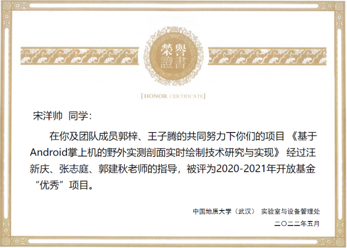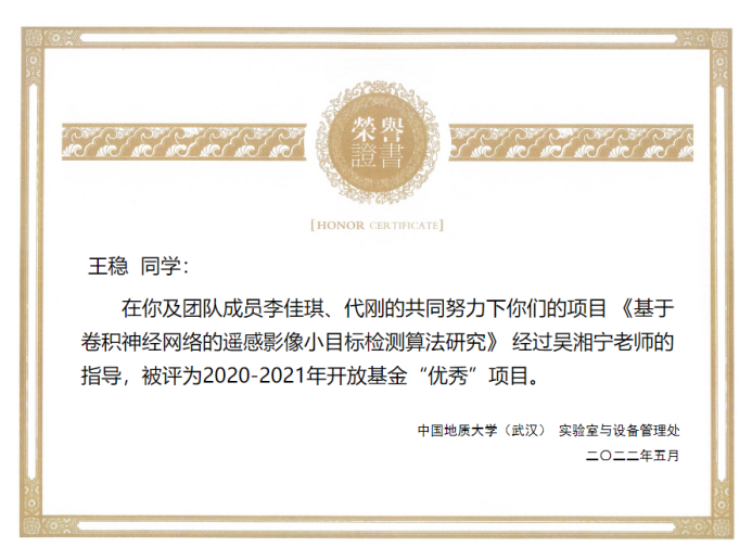 (通讯员:黄燕霞)近日,从实验室与设备管理处获悉,公司在2020-2021学年度教学实验室开放基金项目验收评审中荣获佳绩。张志庭、郭建秋指导的员工团队项目《基于Android掌上机的野外实测剖面实时绘制技术研究与实现》(员工负责人:宋洋帅)、吴湘宁老师指导的项目《基于卷积神经网络的遥感影像小目标检测算法研究》(员工负责人:王稳),在考评中获评优秀,同时球友会被评为优秀项目管理单位。