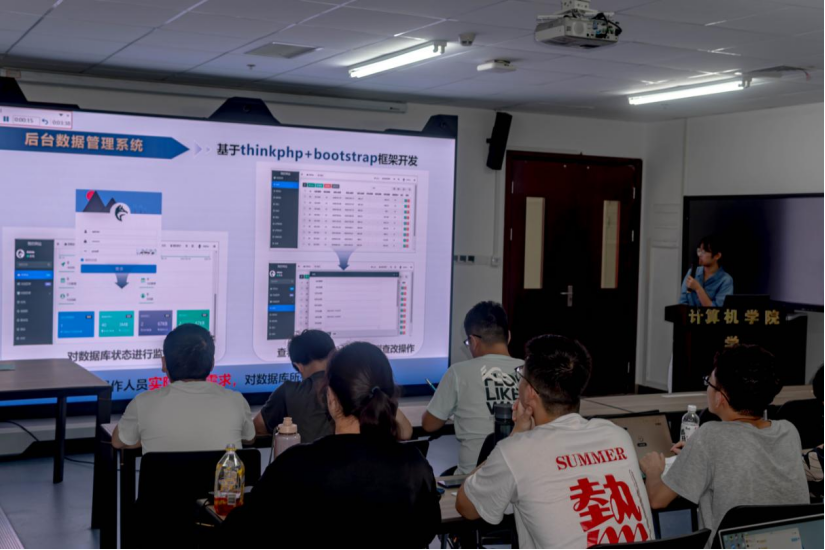 “晴日听暖风,蛙鸣夏令新。”炎炎夏日正当时。6月28日,公司空间信息与数字技术专业194191、194192班学子在未来城校区科教一楼235实验室,召开了一场别开生面的“发布会”,向计算机应用系师生展示自己和团队为期一个月的应用开发实习的辛勤成果,展现了空信人勇立潮头、敢闯敢干、引领风尚的精神风貌。