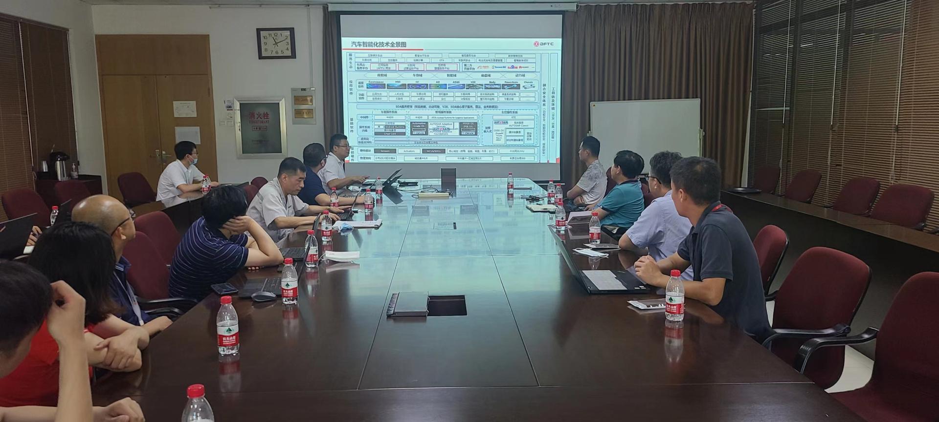东风汽车集团公司智能软件中心对公司一行人员的到访表示热烈欢迎。刘洛川介绍了东风汽车公司及集团技术中心总体情况和东风公司在校企合作方面的部分案例和政策;周海鹰介绍了智能软件中心情况,并详细介绍了东风技术中心在电子电气架构、基础软硬件、国产芯片、智能驾驶、智能座舱及云平台等方面的先进技术;申中一介绍了东风集团在智能化领域的人才缺口、人才招聘政策及实习生需求情况等。
