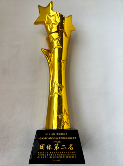 近日,从2022年湖北省第一届“数字工匠”技能大赛暨“中信网安杯”网络与信息安全管理员职业技能竞赛组委会获悉,由公司信息安全系朱静老师指导的“Flag又不队”战队(队员:覃程伟、孙升阳、张涛)以总分第二名的成绩荣获团体攻防对抗赛员工组二等奖,由马钊老师指导的“Flag对不队”成员徐盛华以总分第六名的成绩斩获个人综合靶场赛员工组三等奖。