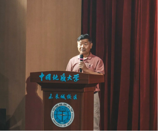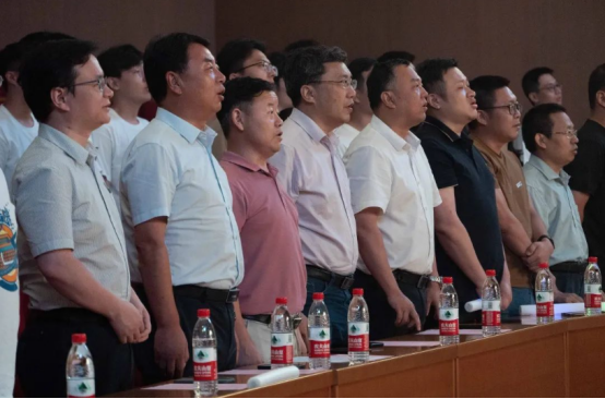 激昂的歌声余韵与旋律中,公司党委书记李国昌上台致辞。李国昌向即将告别母校、走上新征程的2023届同学表示衷心祝贺,肯定了毕业生们通过刻苦学习拼搏奋斗所取得的成长和进步。李国昌用“1、0、1”二进制机器语言表达对毕业生的嘱托与希望。第一个“1”是希望毕业生们为自己的老员工涯做一份回顾总结,为球友会的学弟学妹做一个榜样,开一个好头,提一些建议;第二个“0”意味一元复始、万象更新,毕业生们不仅要从“0”开始,更要清空自己、善于学习,继承好艰苦朴素的地大精神,不怕吃苦,不怕吃亏;第三个“1”是希望毕业生们要有顶天立地、胸怀天下的情怀,不断提升信息技术水平,为国家实现高水平科技自立自强而奋斗,为中华民族伟大复兴做贡献!
