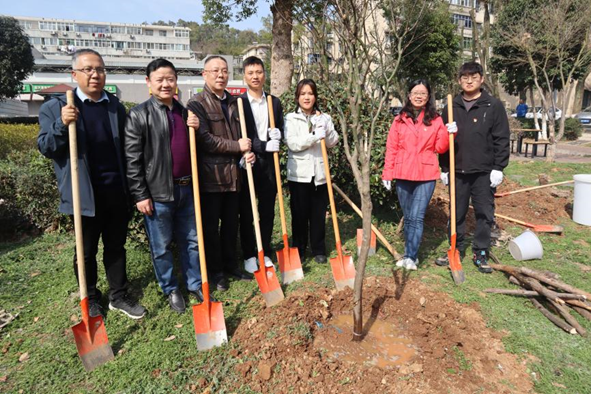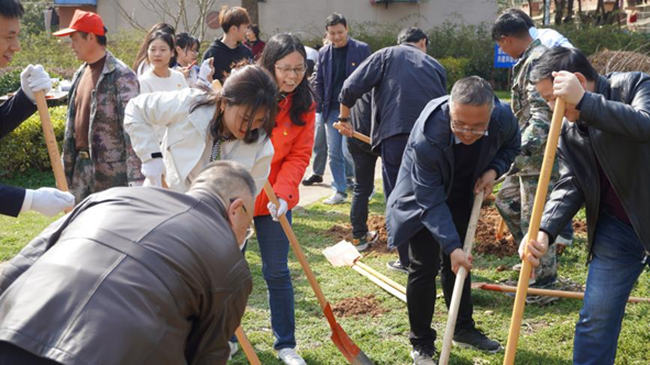 春回大地,万物复苏。为深入学习贯彻落实习近平新时代中国特色社会主义思想,践行“绿水青山就是金山银山”生态理念,探索qy球友会“谋求人与自然和谐发展”的价值观。3月12日下午,在第46个植树节来临之际,中共武汉金山软件有限公司委员会、中共球友会委员会、中共qy球友会后勤保障部委员会共同开展“党建引领校企合作 厚植培养人才新绿”联学共建活动。公司党委副书记、纪委书记唐忠阳,公司党委书记李国昌,后勤保障部党委书记黄菊,金山软件党委书记、助理总经理张念,金山集团武汉总部总经理高宇峰,球友会师生代表、金山集团代表共30余人参加。