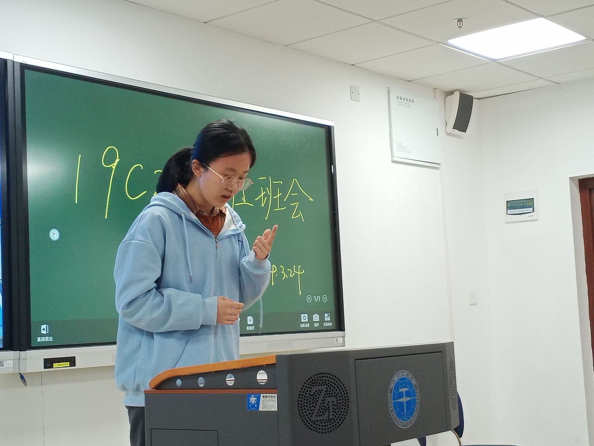 随后各班学委向同学们作学情分析报告。学委从班级整体绩点情况、优秀率、挂科率入手,肯定了同学们在上一学期的生活学习中取得的成绩,同时指出部分同学仍存在不足之处,勉励取得优秀成绩的同学不自傲,接续努力,在新学期里再创佳绩,鼓励成绩不够理想的同学不要气馁,在新学期更加专注于学习,实现自我的突破。此外,学委在分析上学期挂科科目情况后,提醒同学们要格外注意高数和线上课程的学习。