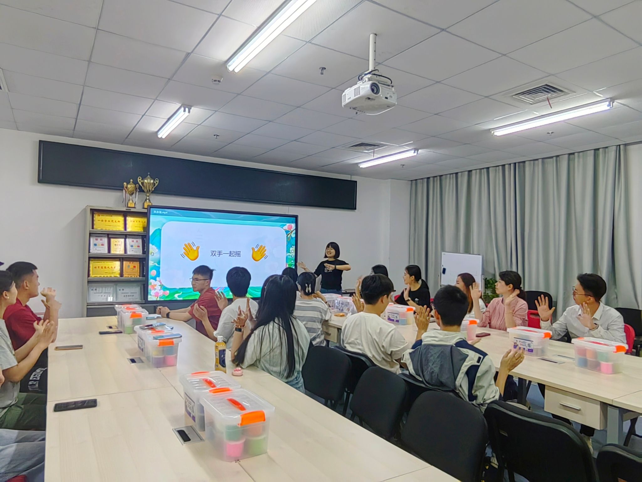 活动伊始,闫维蓉老师以一首节奏感强劲而明快的音乐《上春山》带领大家进行热身活动,帮助同学们活动身体、放松身心,这一环节促进了彼此间的了解,也为后续活动创造了轻松和谐的氛围。