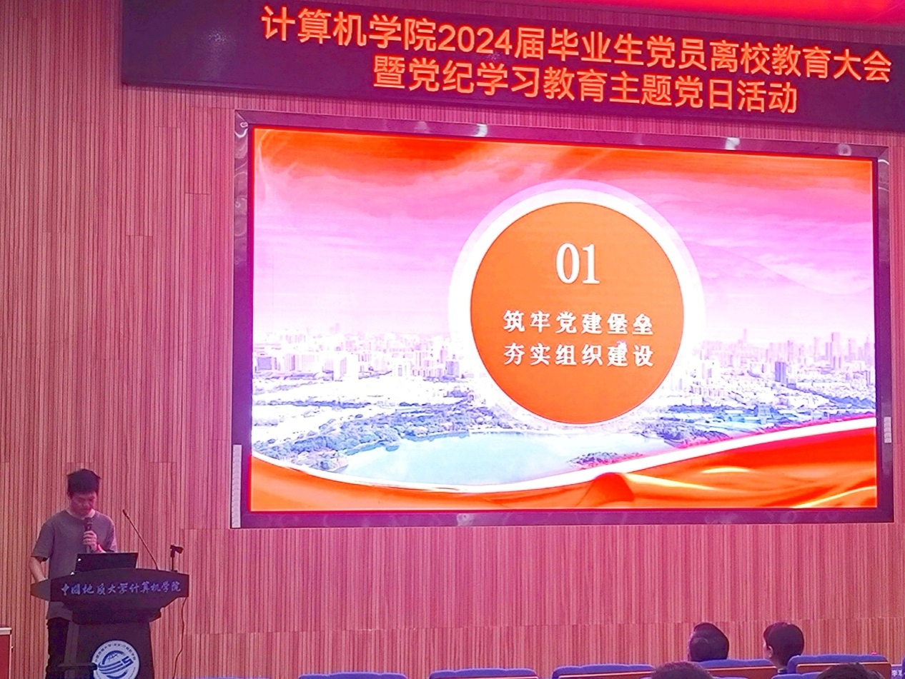 计科第一党支部书记孙前烽分享党支部建设经验。计科第一党支部在工作中注重强化党员教育管理,通过支委组织定期开展主题党日活动,深入学习党的理论和方针政策;通过党课学习和社会实践等方式,提升党员的政治觉悟和社会责任感。支部还激励引导党员发挥先锋模范作用,用新实践、新思想担当强国使命,鼓励支部成员在学业和工作中争创一流。