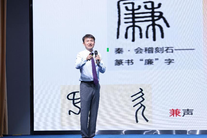 校师德模范、最受员工欢迎老师,公司马钊老师,作了题为《廉洁花开锦程未来》的精彩分享。马钊从公司隧道的四幅清廉壁画讲起,兰花、竹子、荷花、梅花这四幅壁画以画喻“廉”、以“廉”治“心”,通过艺术生动体现了公司清风、正气、廉洁、勤政的廉洁文化氛围。他从“廉”字说开,对“廉”字进行了字形解读。广而兼是为廉:广阔天地,兼容万物。如若兼善,则可自清,如若兼金,则头顶悬镰。