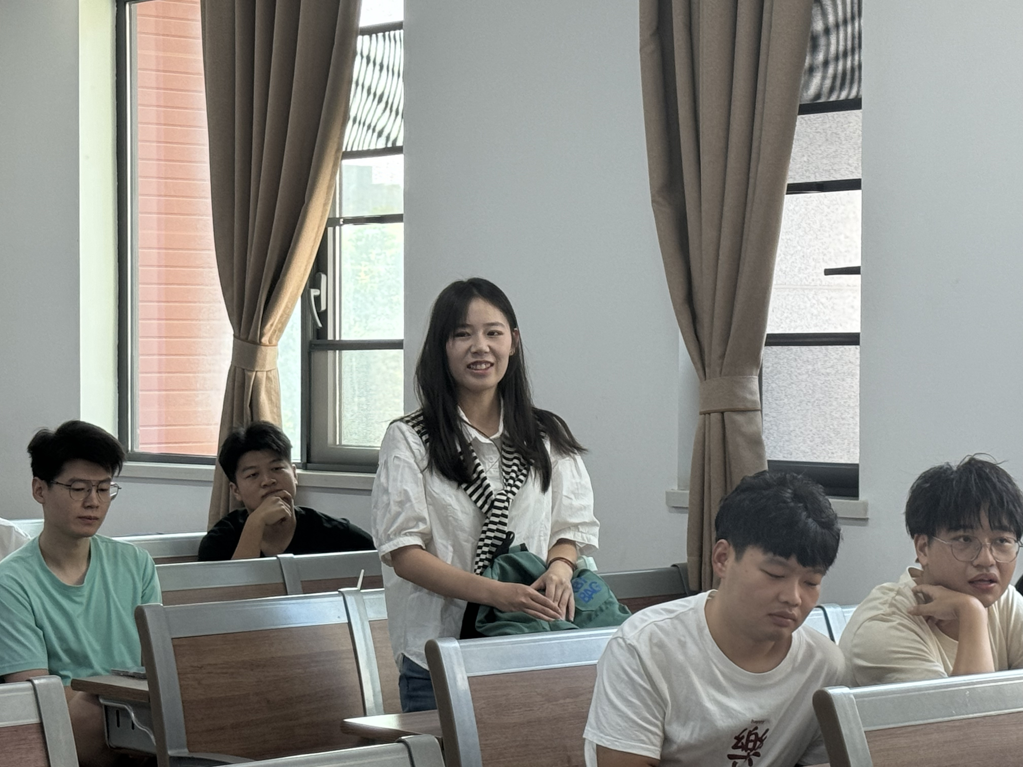 本次活动以班级为单位,设立6个会场。首先,2024级的新生们依次进行自我介绍。虽未曾谋面,但彼此间的率性而真挚,自信而从容,不禁让人心生“与君初相识,犹如故人归”的共鸣。大家的介绍各具特色,或聚焦日常爱好,或畅谈偶像榜样,或分享假期趣事,幽默风趣的语言,个性鲜明的表达,自由洒脱的真性情,无不彰显出公司研究生的独特魅力和积极向上的精神风貌。在欢声笑语中,彼此间的了解逐渐加深,友谊的种子悄然生根发芽。希望同学们以此次见面会为契机,把握每一次活动和锻炼机会,积极融入,全面成长。