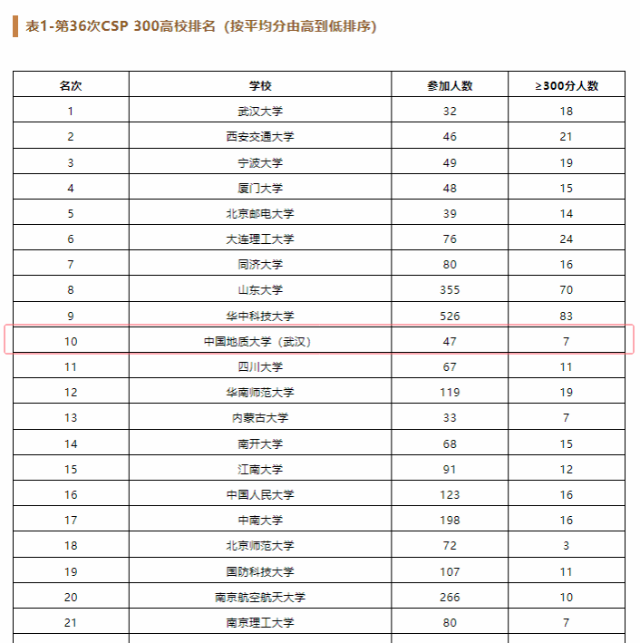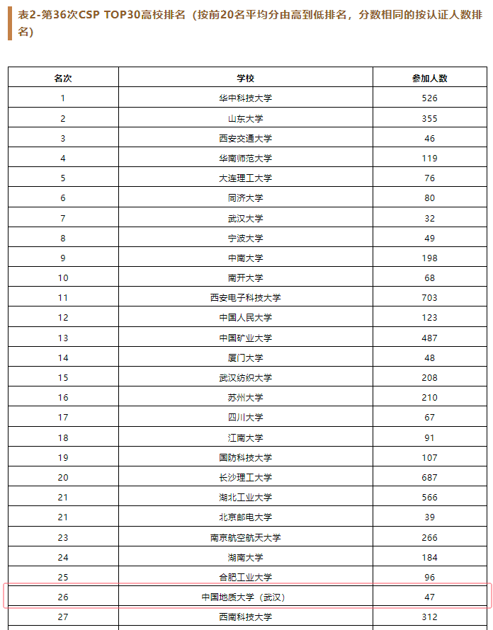 据悉,此次认证共有来自全国192个高校的8218人参加。公司共47人参加认证考试,其中300分以上达7人(CSP总分500分)。CCF对参加人数大于等于30人且2人及以上认证成绩达300分的高校进行了平均分排名,公司排名进入前十。此外,CCF对每所公司排名前20同学的成绩进行了平均分排名,产生了CSP TOP30高校,公司排名第二十六。