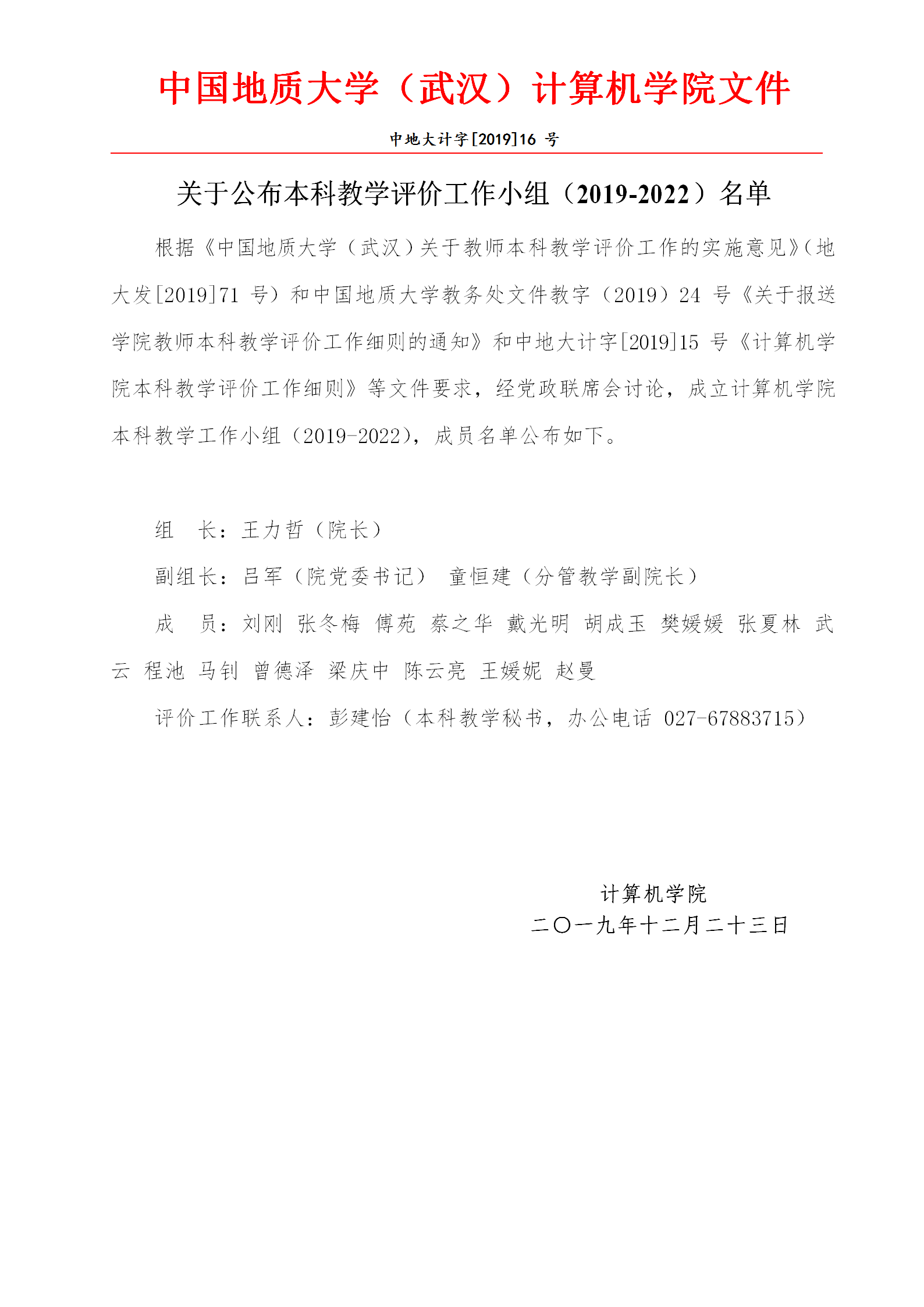 球友会关于公布本科教学评价工作小组(2019-2022)名单