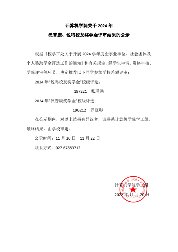 球友会关于2024年汉普康、锐鸣员工奖学金评审结果的公示