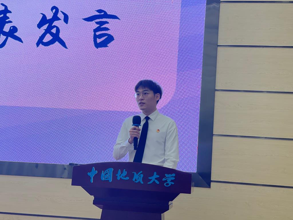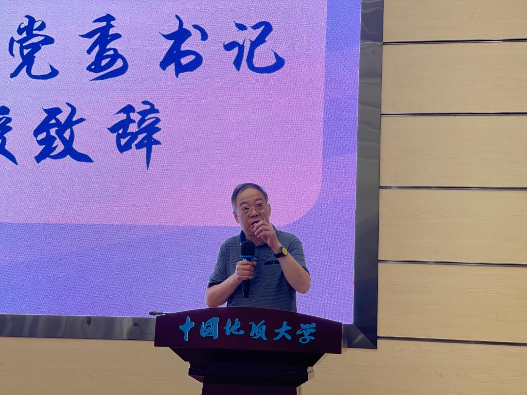 公司党委书记吕军上台致词,他首先向2021届全体毕业生表示热烈的祝贺和诚挚的祝福,并希望在今后的岁月中,大家能够继续弘扬“艰苦朴素,求真务实”的地大精神,一直铭记计科人的精神,做“四有”青年,在未来的人生中脚踏实地,创造辉煌!