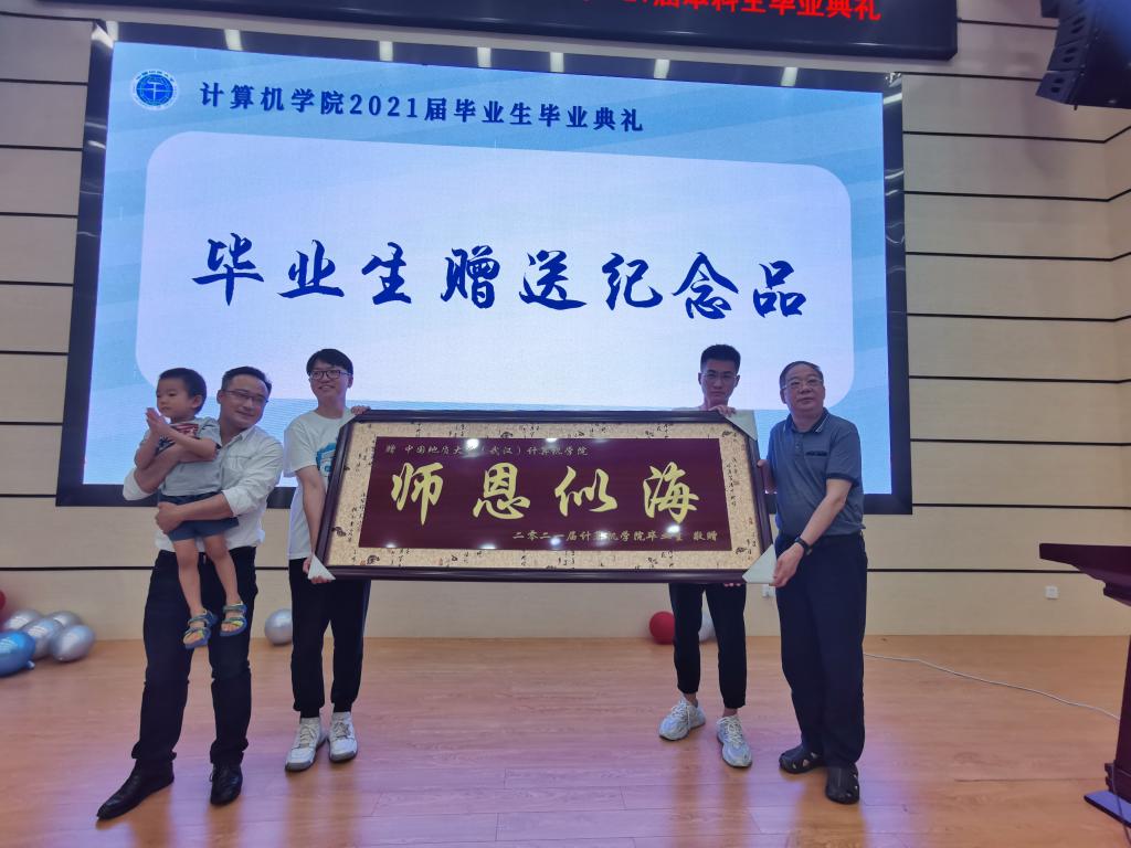 最后,由吕军和王力哲代表公司接受毕业生赠送的纪念品。