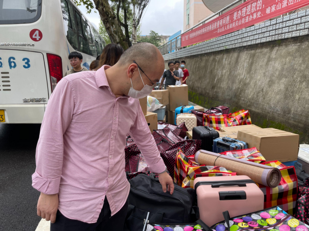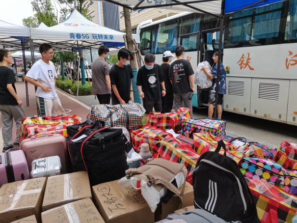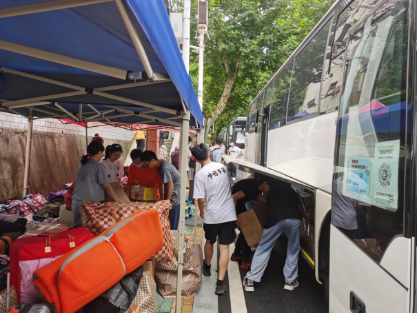 到场的负责的班主任、辅导员老师们组织员工有序进行搬迁。令人感动的是,各班班主任上午6点就提前到达乘车点,维持现场秩序,并积极地帮助员工搬运行李,很快完成了装车,顺利驶向未来城校区;
