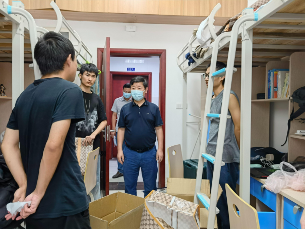 下午, 公司党委书记李国昌、副经理张冬梅、副书记傅苑、副经理胡成玉、团委书记李欢欢及办公室主任石剑峰、院直支部书记黄燕霞、学工组全体辅导员以及教务科老师前往宿舍看望走访员工宿舍,为同学们送去问候和关怀,叮嘱同学们要在新的生活环境中努力学习,奋发有为。