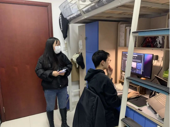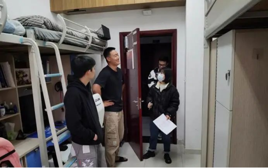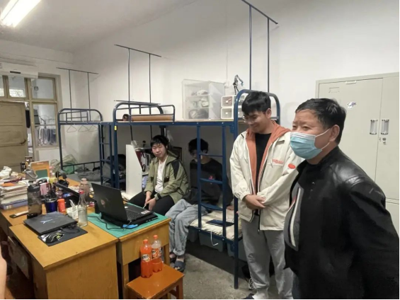 (通讯员:申安琪、李欢欢)为深入贯彻落实公司疫情防控和安全稳定工作要求,准确把握分析员工思想动态,2022 年3月18日下午,公司党委书记李国昌、副书记傅苑、办公室主任石剑峰、班主任代表黄燕霞、教学事务秘书韦薇、员工事务秘书申安琪、合作办学事务秘书张园园及学工组专兼职辅导员对全体员工宿舍进行走访。