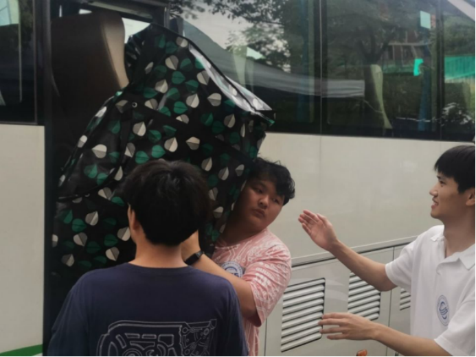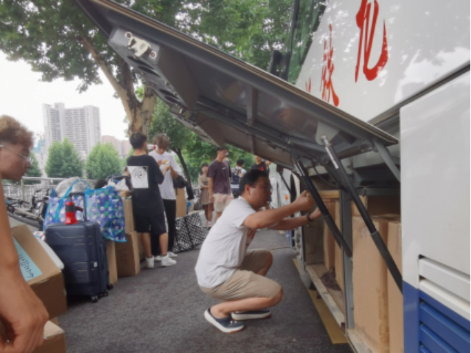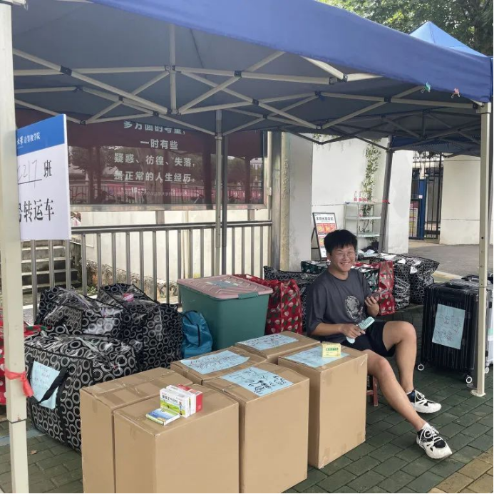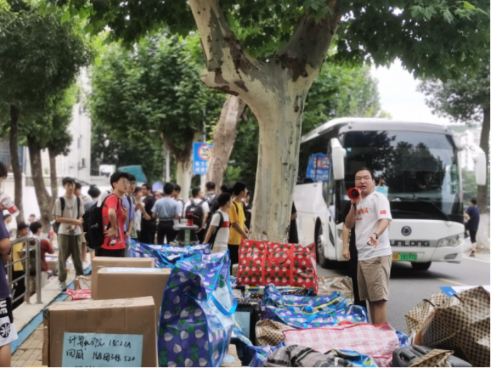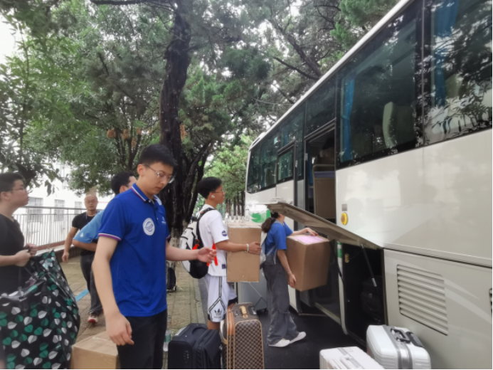 为保证大家的行李都能顺利抵达未来城,2021级每个班都分别安排了行李清点员,在装车前后做好行李清点工作。