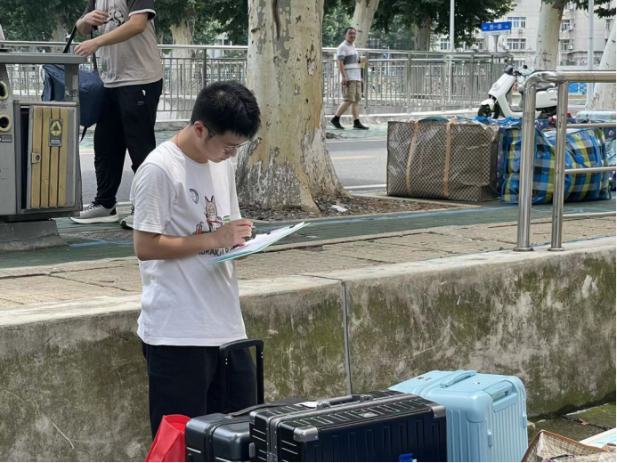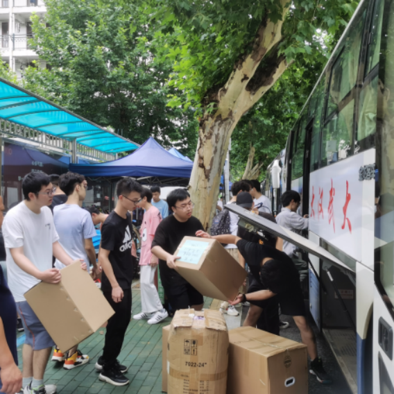 搬迁工作分上午和下午、南望山校区和未来城校区交替进行。早上7点,同学们已经开始陆陆续续将行李搬运至集合地点。