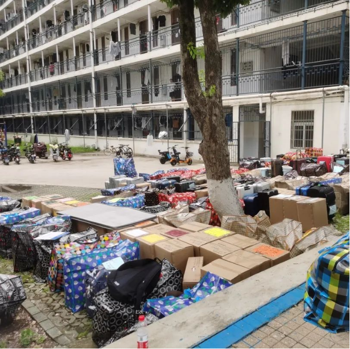班主任、学工组的老师们全程守在搬运现场,维持秩序,提供帮助。