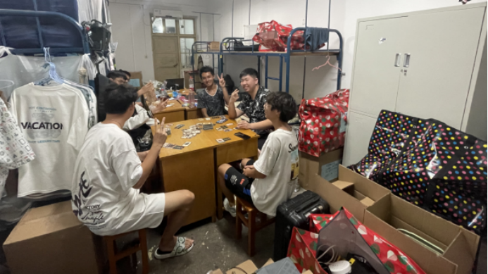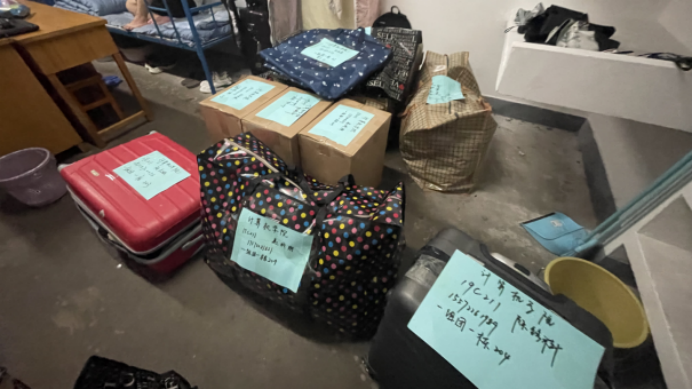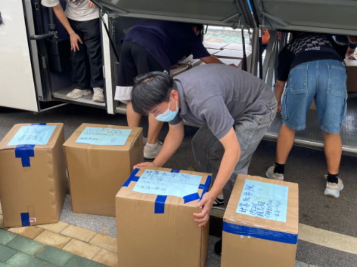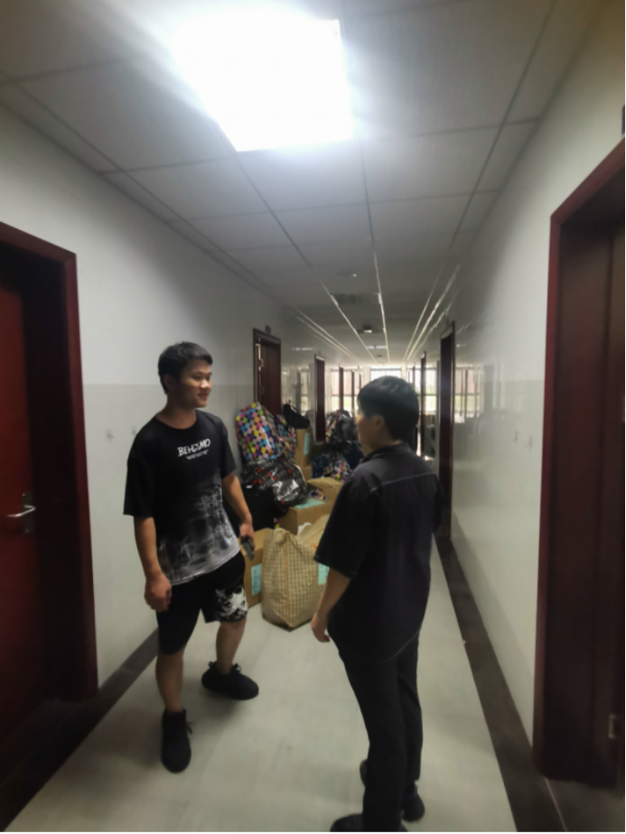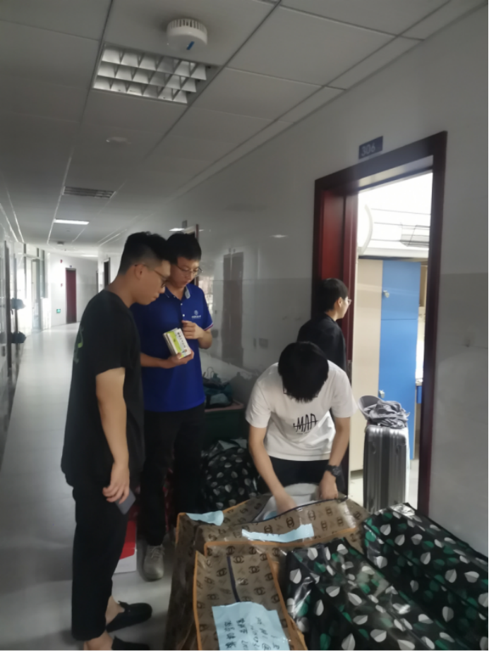 搬迁前一晚,同学们使用公司派发的物资,认真打包好行李,在各自的行李上贴好标签,以免丢失。公司还提前准备了消暑药品、晕车药、饮用水供员工自取。