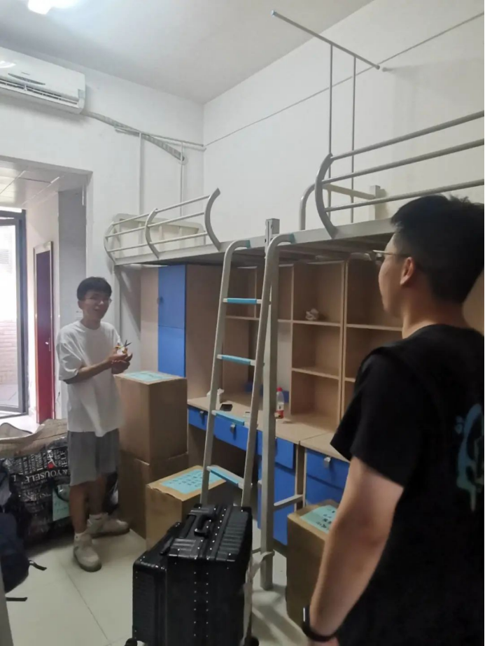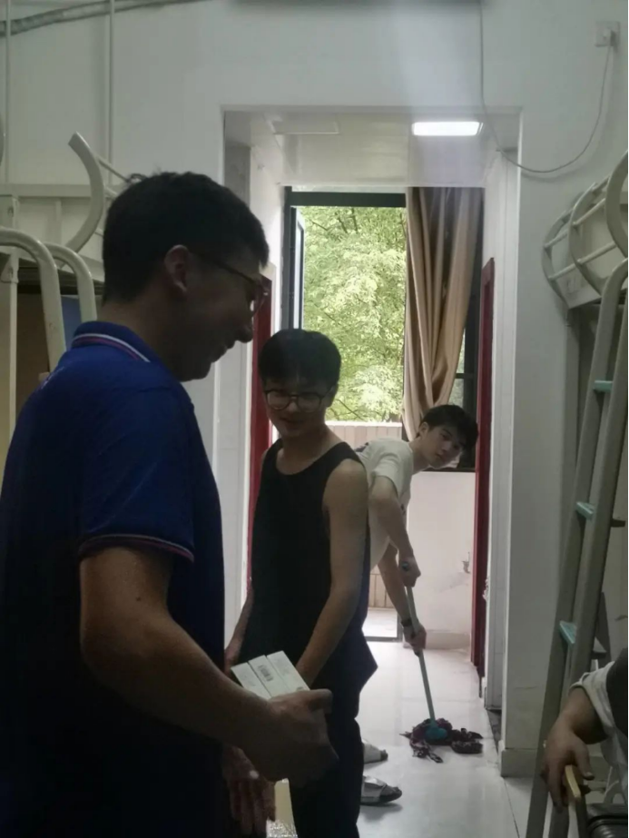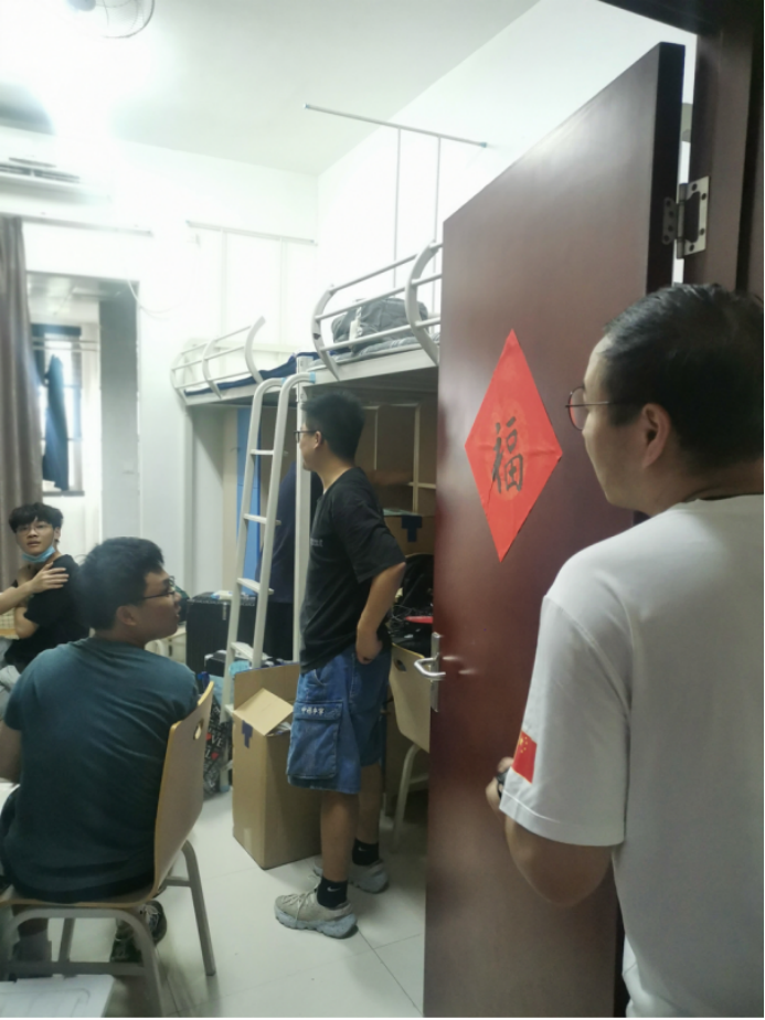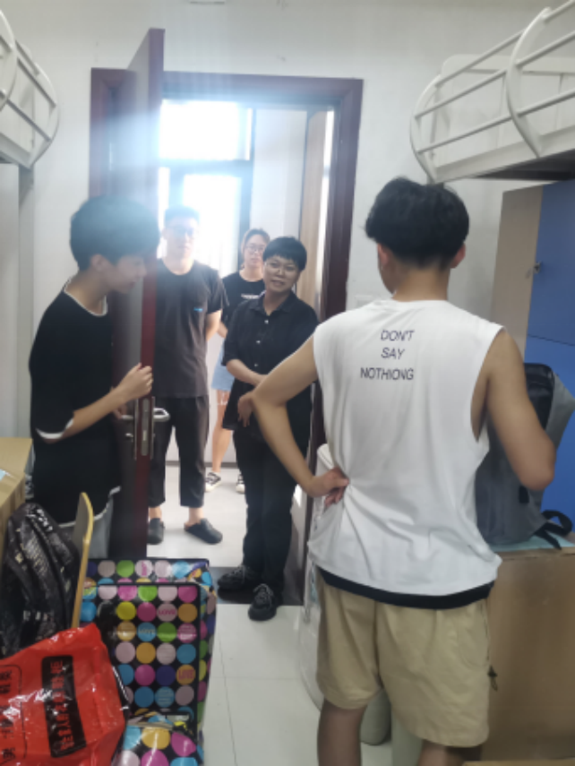 下午5点,最后一批行李搬运结束,同学们便开始了宿舍的整理和打扫工作。学工组老师们走访2021级员工宿舍,询问宿舍整理情况,为同学们答疑解惑。