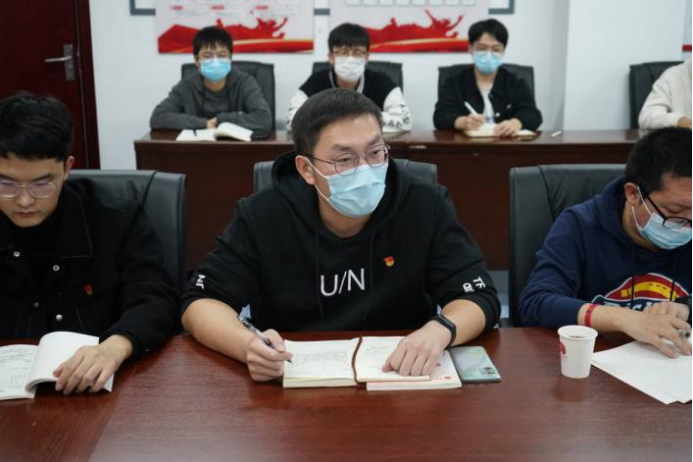 王太茂领学习近平总书记给山东省地矿局第六地质大队重要回信精神。他讲到,在党的二十大即将召开之际和公司70周年校庆前夕,习近平总书记的重要回信充分体现了对国家能源资源安全的高度重视和对地质工作者的真挚情感,这让全体地大人备受鼓舞,倍感振奋。他希望与各位支部书记用好党建工作这个抓手,一丝不苟贯彻落实习近平总书记重要讲话精神,在新时代引导同学们立科技强国之志,不畏艰难,攻克技术壁垒,不负韶华,积极投身伟大时代。