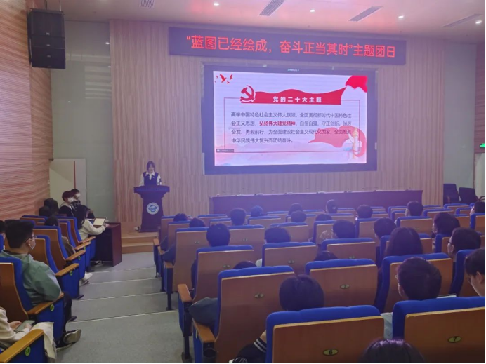 为深入学习党的二十大报告,深刻领悟党的二十大精神,切实把会议精神和行动统一起来,为中华民族伟大复兴的新征程贡献青春力量。近期,2021级10个团支部、2022级11个团支部分别举办了以“蓝图已经绘成,奋斗正当其时”为主题的大型团日活动。本次团日活动于未来城校区球友会大楼126报告厅和南望山校区教三楼111教室举行,全体团员参会,会议由院团委员工会组织部副部长郭洋利主持。