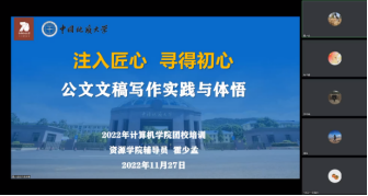 第一节课《注入匠心,寻得初心——公文文稿写作实践与体悟》由资源公司辅导员霍少孟老师讲授。霍少孟从自身员工工作经历引入,强调人生最重要的两种能力就是语言和写作即思维与逻辑。他认为写作是一种思想的表达形式,并用多种示例说明不同场合写作方法、格式、逻辑的灵活运用,随后介绍好的文稿“五要素”以及写作“五部曲”。在课程最后,他寄语同学们要提高认识、坚持学习,唯有勤学苦练才能造就高水平文章。