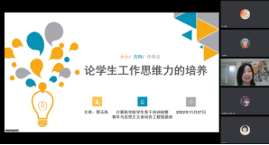 第五节课《员工工作思维力的培养》由就业指导中心副主任郭玉凤老师讲授。郭玉凤以员工骨干简历入手,强调员工工作思维能力包括知识、技能、才干,激励同学们在实践和体验中不断提升自身统筹、思维、操作层次。郭老师还通过视频互动的方式介绍思维力的三要素即大小、方向、作用点,鼓励员工骨干勇于踏出舒适圈、勇挑时代赋予的重任,以饱满的干劲和昂扬的斗志擦亮“青春底色”。
