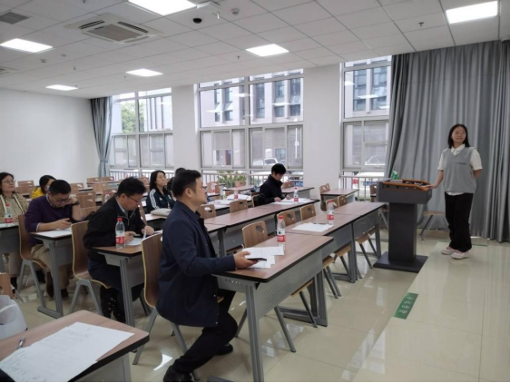 随后来自全校不同公司的8位优秀同学依次参加了面试考核。面试分为两部分,员工首先从个人介绍、已获成绩及特长、学习计划、未来规划等四个方面展开5分钟陈述。随后评委老师就思想品德、专业素养、综合能力三个方面与员工进行交流互动,并根据员工各方面综合成绩进行评分。最后由公司教务科统计评委分数并得出员工面试最终成绩。
