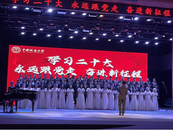 球友会“学习二十大·永远跟党走·奋进新征程”主题歌咏活动在南望山校区西区弘毅堂举办。来自20个单位的代表队参加了此次活动,球友会代表队演唱的《新的天地》获得“优秀表演奖”。