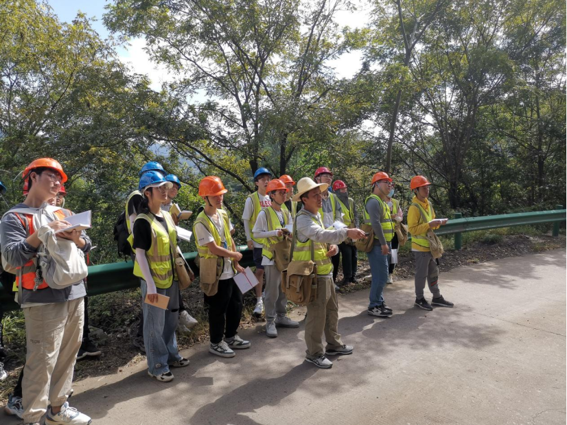 同学们携手观测,以放大镜观察岩石中的秘密,以罗盘测量地层的产状,同学们组内分工明确,搬运工具、收集标本、拍摄照片,整理野簿一个不落,组外守望相助,共同完成一个个观测点的记录。