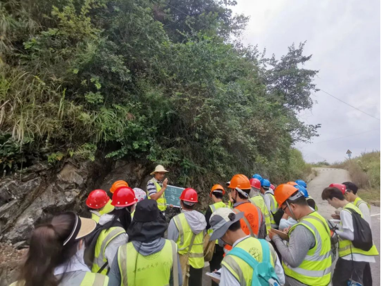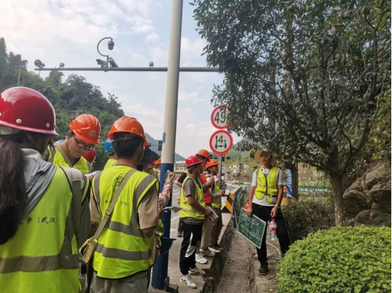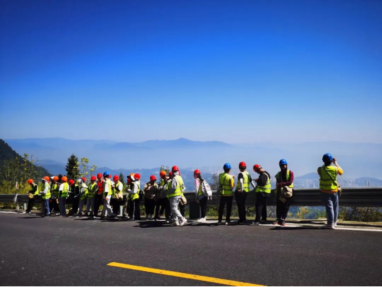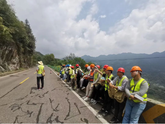 作为秭归最美公路的芝茅公路,有着“山水田橙坝港峡”的多重风光,同时提供了黄陵花岗岩体、南华系、震旦系等地层岩体的绝佳观测点,可谓是颜值与内涵并存。空信学子们迎着日出,在张志庭老师、李章林老师、李新川老师和辅导员谭文博老师的带领下,沿着这条最美公路,与古老岩石对话。