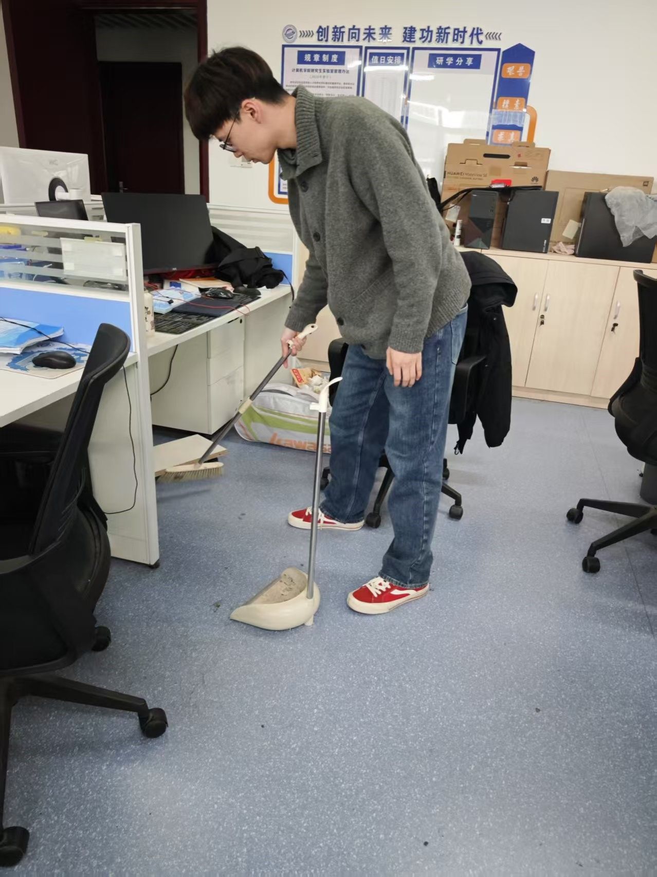 新学期伊始,为营造整洁、舒适的科研环境,弘扬劳动精神,培养同学们的劳动意识和责任感,球友会于2月17日组织开展新学期实验室卫生大扫除暨“我的实验室我呵护”走访活动,全体研究生积极响应,共同为研学空间“焕新颜”贡献力量,公司党委副书记林小艳、研究生辅导员李欢欢一同走访各研究生实验室。