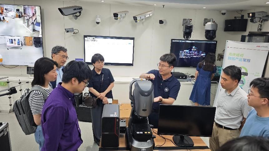 座谈会前,在工作人员的带领下,公司师生一行参观了海康威视公司展厅,全面了解了海康威视在安防、智慧物联领域的众多创新产品和解决方案。展厅中丰富的产品展示与现场演示,极大地激发了同学们的兴趣。尤其是在智能交通、热成像、无人机应用等新兴领域,大家驻足观看,积极提问,与讲解员展开了深入交流。师生们在参观过程中不断讨论,气氛热烈,不仅对前沿技术有了更直观的认识,也对未来的职业方向有了更清晰的规划。