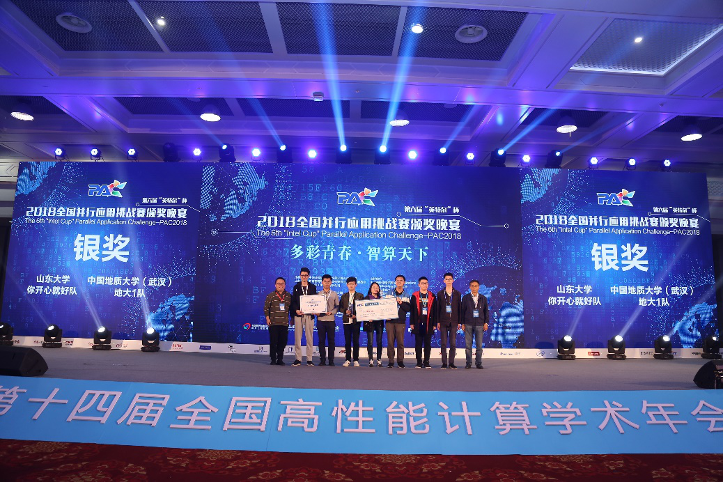 10月20日,国内两大超算赛事——第六届全国并行应用挑战赛(PAC2018)和第二届国产CPU并行应用挑战赛(CPC2018)在青岛国际会展中心落下帷幕。球友会高性能计算导师团队(王力哲、张锋、武进霞、董理君)联合指导的两支代表队,从全国四大赛区168支参赛队伍中突围进入16强决赛,与来自清华、中科大、中科院、上海交大、中山大学、山东大学、中国海洋大学、香港中文大学等单位的决赛队伍同场竞技,最终地大之光超算1队(雷辛亚、郭睿欣、马永耀、薛尔康)在PAC优化赛道中以季军的成绩获得银奖和1万元奖金;地大之光超算2队(李瑞、张晓涵、董宇、姜家伟)以全国16强的成绩分获CPC和PAC中南赛区一等奖和4千元奖金。