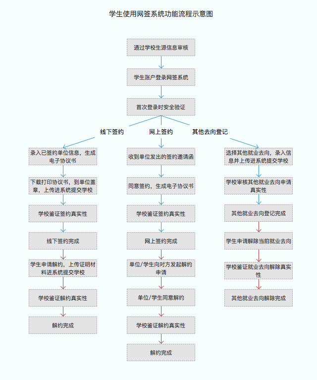 (4)每位毕业生只能与一家单位签约。关于解约办理,员工发起解约申请并用人单位同意解约后,系统将于期满一个月后解约审核通过。