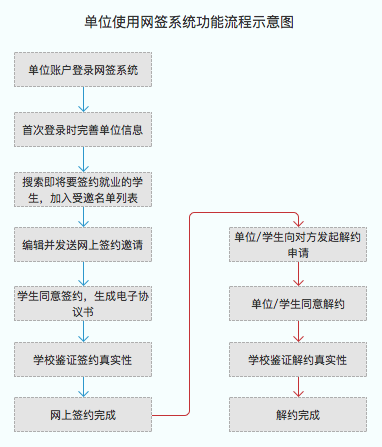 为更好的服务员工、用人单位,并提升公司信息化水平,公司于9月20日起启用电子签约系统。用人单位及毕业生通过湖北高校就业网络联盟电子签约系统完成电子协议书签约流程。网上签约开通时间为2019年9月20日至2020年7月下旬。