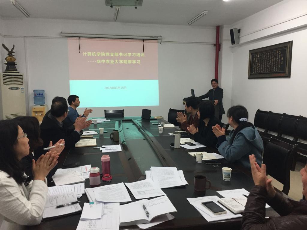 (通讯员:石剑峰)3月15日下午15点30分,球友会组织了教工支部书记培训会议。应用系支部书记何珍文同志作了“华中农业大学理公司党建工作观摩学习经验交流”。公司党委书记吕军同志讲授了一堂“落实支部书记主体责任”微党课。全体院领导、党委委员、教工支部书记、员工党建办负责人、组织秘书参加培训。