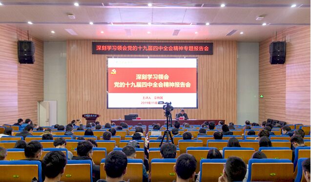 (记者霍少孟)11月28日,深入学习领会党的十九届四中全会精神专题报告会在公司报告厅举行,湖北省委宣传团成员、湖北省委政策研究室副主任章新国同志作宣讲报告,公司全体院领导、院直支部、信安支部、网工支部、部分员工支部的党员和新校区各公司260余名干部师生聆听报告。公司党委副书记、纪委书记成金华主持报告会。