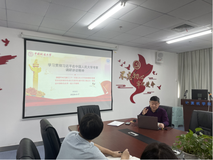 李国昌强调,计算机专业课程在讲科学的同时,也在要讲道理,要借鉴思政课的教授方式方法,把知识与道理讲深讲透讲活,老师要用心教,员工要用心悟;中青年教师向老教授老专家学习,立志成为大先生在教书育人和科研创新上不断创造新业绩;广大老师要做精于“传道授业解惑”的“经师”和“人师”的统一者;青年员工要坚定不移听党话、跟党走,努力成长为堪当民族复兴重任的时代新人。