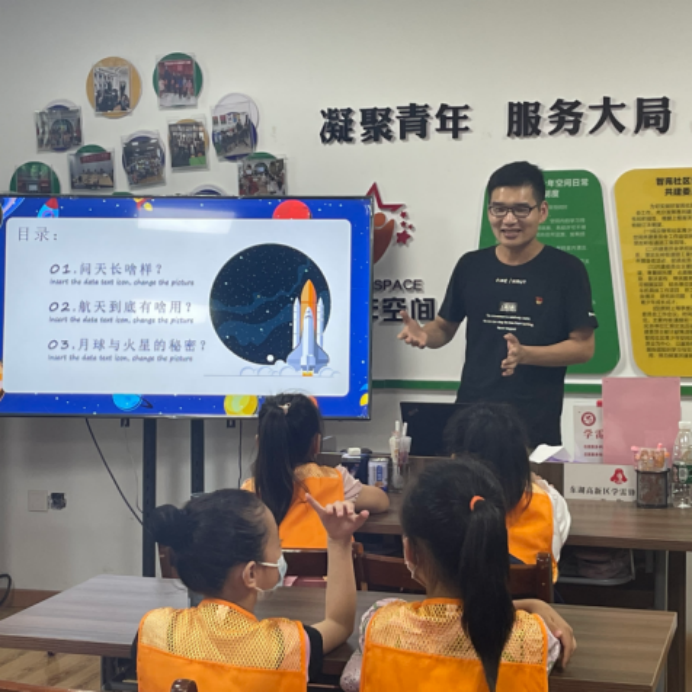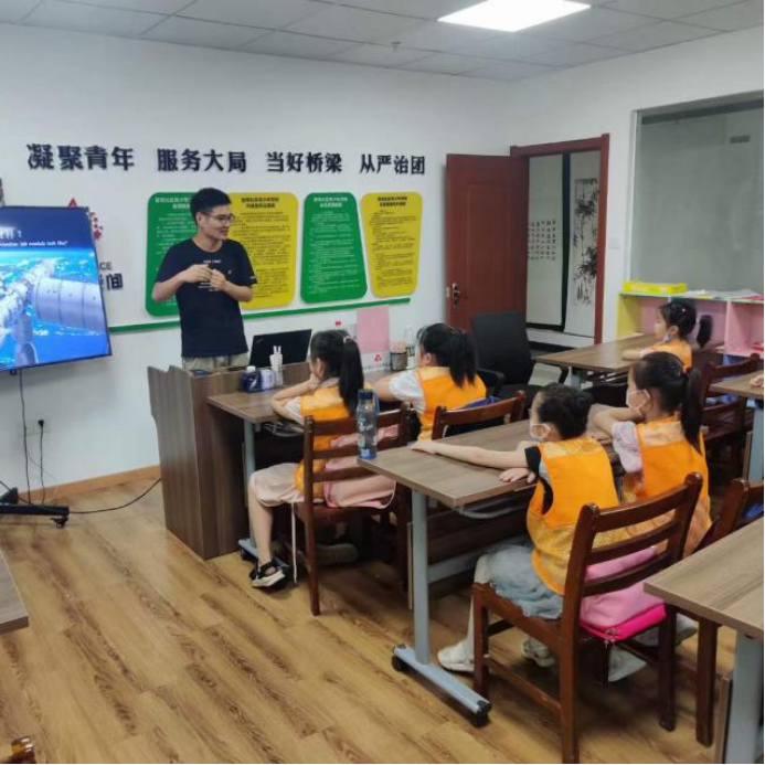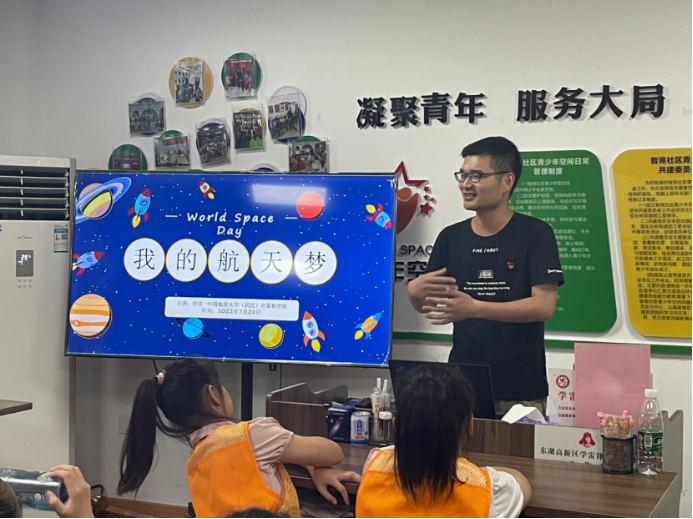 “‘问天’在太空到底忙些啥?未来我们是否可以移民火星?拥有变重力科学实验柜的问天实验舱到底长啥样?”一个个稚嫩的航天梦正在一张张桌椅的“小天地”里悄然萌芽。7月28日,球友会博士生党支部追随习近平总书记的脚步,前往武汉东湖高新区左岭街道智苑社区,面向社区青少年开展航天科普宣讲专题课程,充分发挥学科优势,激发科学兴趣,厚植科学精神,引导青少年在科学探索中茁壮成长,携手共绘航天梦和中国梦。