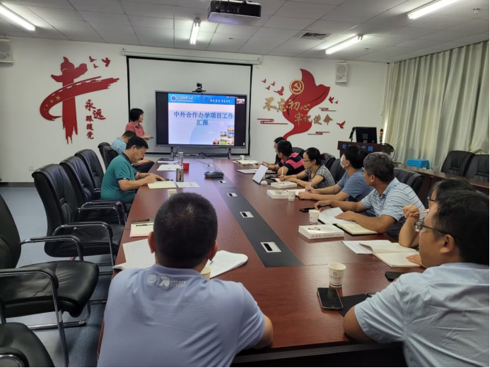 副经理张冬梅做中外合作办学工作情况汇报。她就2020年以来中外合作办学的项目招生情况、项目管理、学风建设、员工管理等做了介绍。会议认为,自中外合作办学项目开展以来,公司上下为之付出很多,取得了一些好的经验,值得各系室认真学习借鉴,希望有关部门持之以恒做好工作,不断提高人才培养质量,同时加大宣传力度,讲好公司中外合作办学好故事。